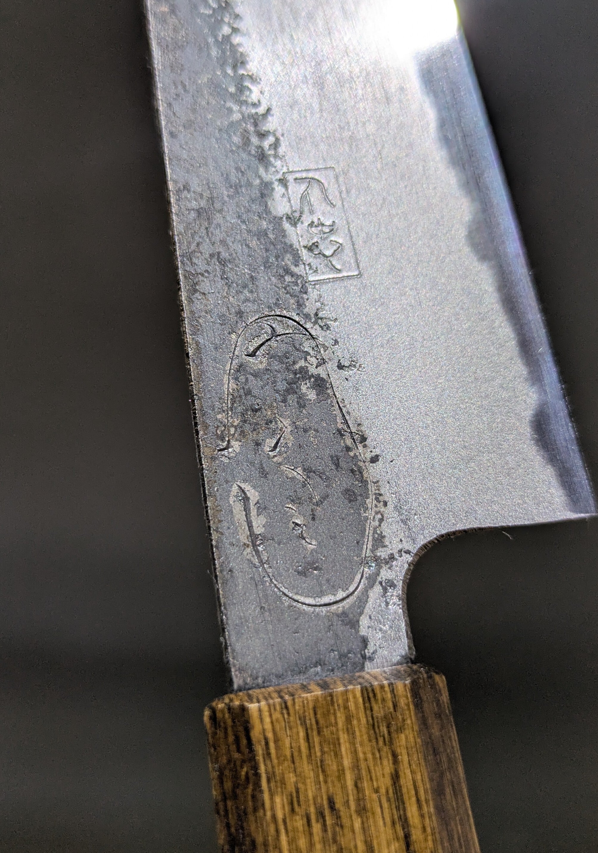 ※「黒打」(Kurouchi) refers to a technique where the black oxide film formed during forging or quenching is deliberately left intact, with only the cutting edge polished to completion.