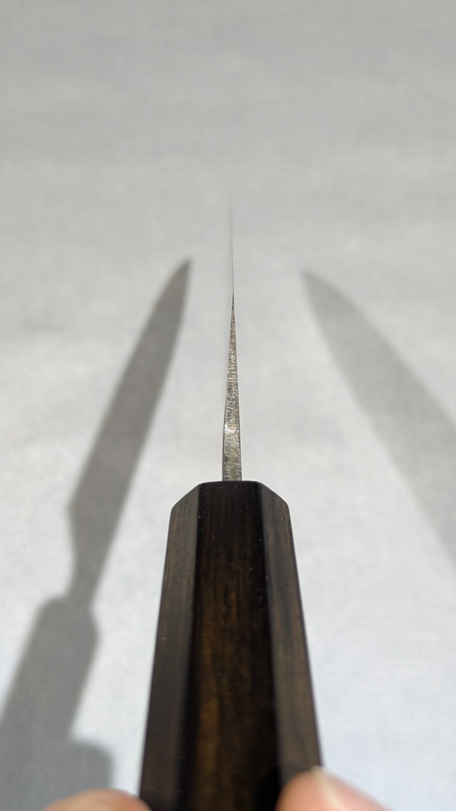 ※「黒打」(Kurouchi) refers to a technique where the black oxide film formed during forging or quenching is deliberately left intact, with only the cutting edge polished to completion.